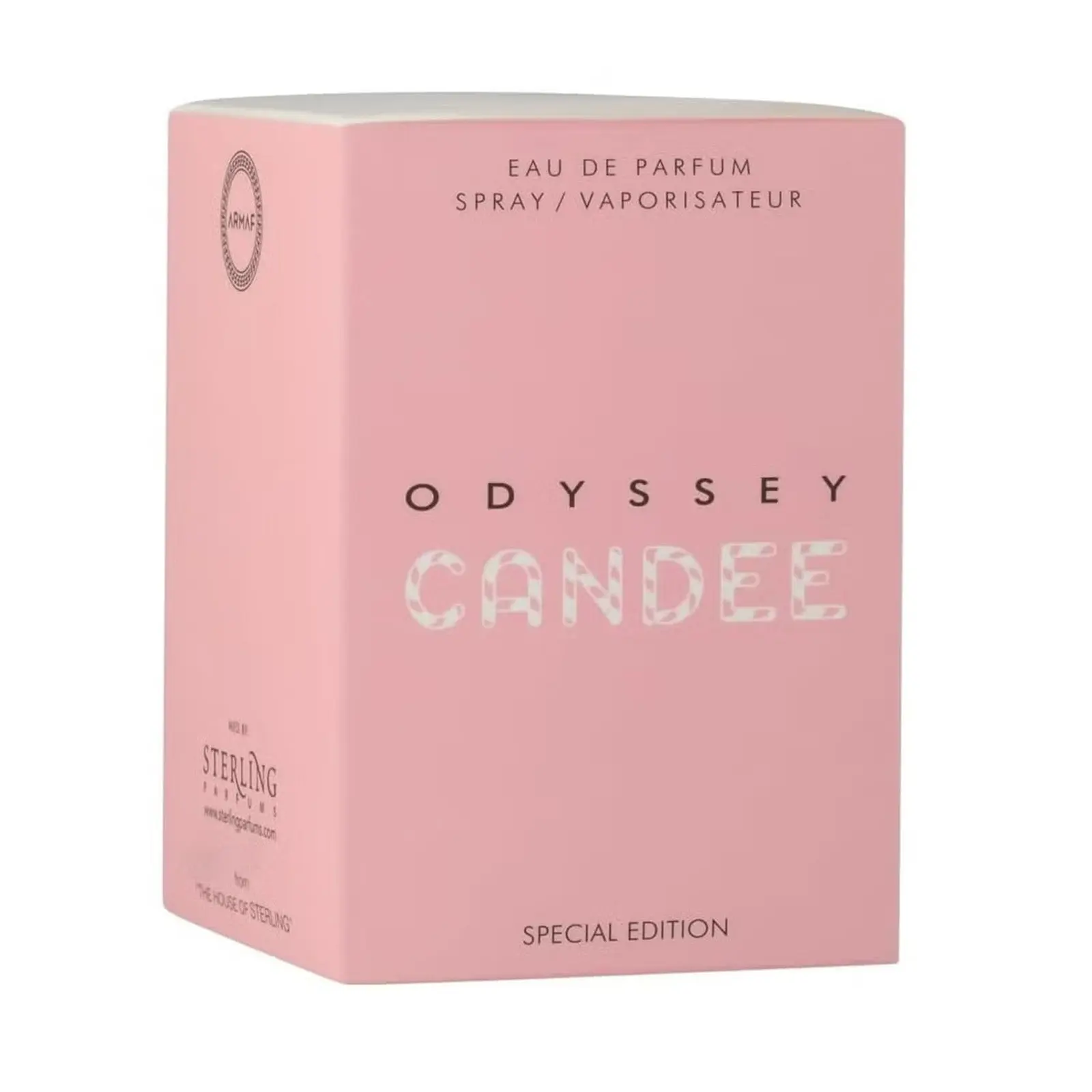 Odyssey Candee Perfume 100ml EDP Armaf is a playful yet elegant Eau de Parfum crafted especially for women who adore sweet, fruity, and feminine scents. It begins with a vibrant mix of strawberry, raspberry, peach, and bergamot, gently softened by floral touches of geranium. As the scent develops, a heart of creamy caramel, jasmine, and exotic passionfruit adds warmth and charm.